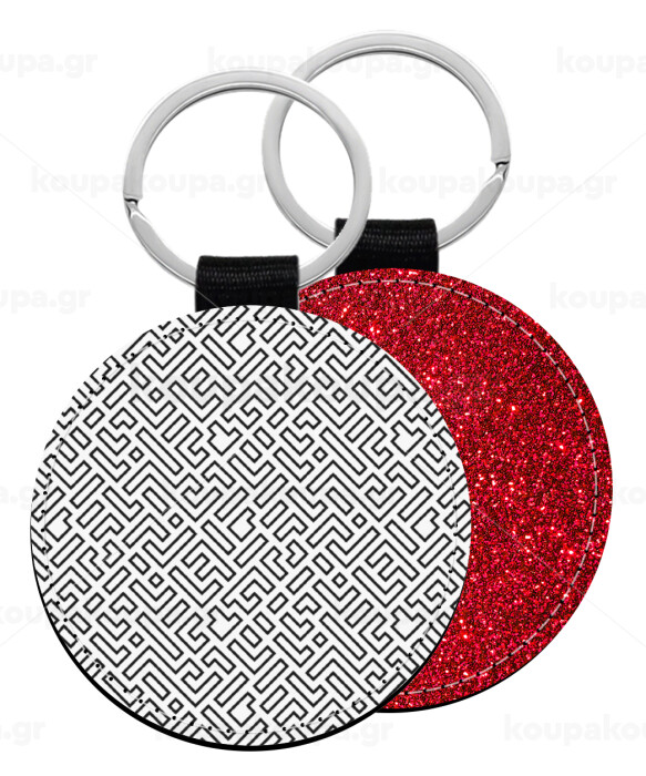 Doodle Maze, Μπρελόκ Δερματίνη, στρογγυλό ΚΟΚΚΙΝΟ (5cm)