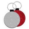 Leatherette keychain with glitter on one side and high resistance leatherette on the other. Safety ring for the keys.