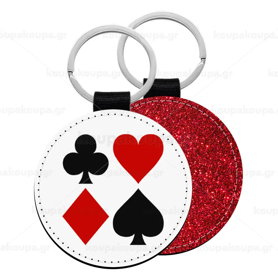 Τραπουλόχαρτα, Μπρελόκ Δερματίνη, στρογγυλό ΚΟΚΚΙΝΟ (5cm)