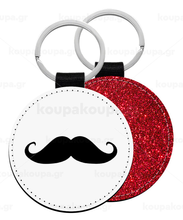 moustache, Μπρελόκ Δερματίνη, στρογγυλό ΚΟΚΚΙΝΟ (5cm)