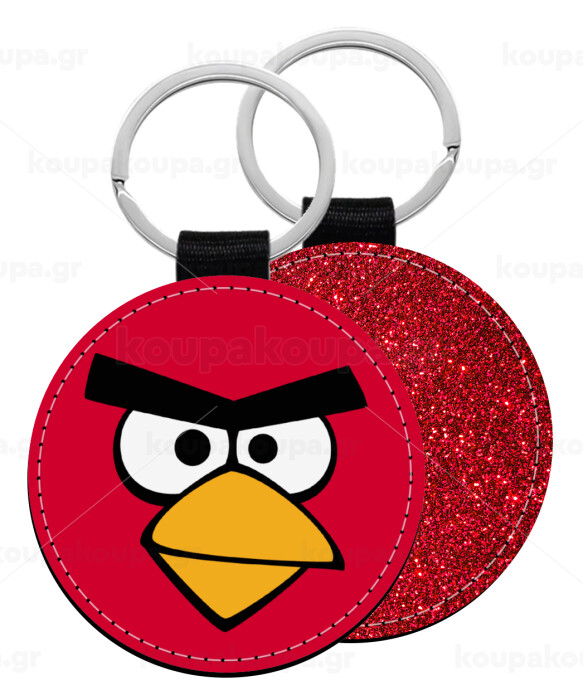 Angry birds eyes, Μπρελόκ Δερματίνη, στρογγυλό ΚΟΚΚΙΝΟ (5cm)