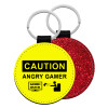 Caution, angry gamer!, Μπρελόκ Δερματίνη, στρογγυλό ΚΟΚΚΙΝΟ (5cm)
