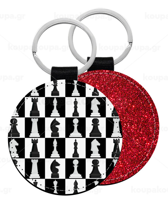 Chess set, Μπρελόκ Δερματίνη, στρογγυλό ΚΟΚΚΙΝΟ (5cm)