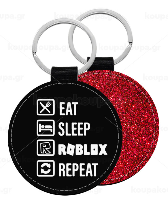 Eat, Sleep, Roblox, Repeat, Μπρελόκ Δερματίνη, στρογγυλό ΚΟΚΚΙΝΟ (5cm)