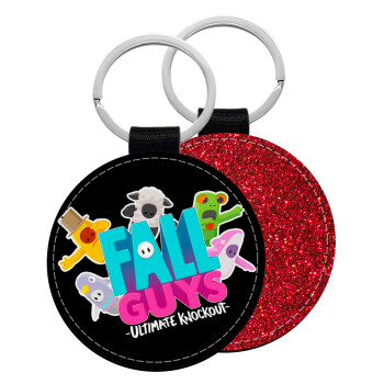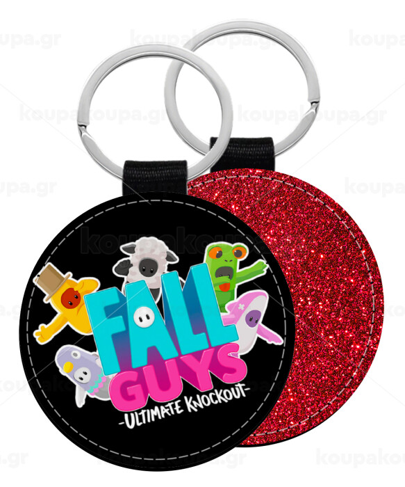 FALL GUYS, Μπρελόκ Δερματίνη, στρογγυλό ΚΟΚΚΙΝΟ (5cm)