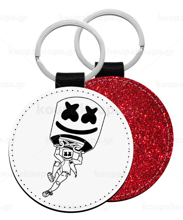 Fortnite Marshmello, Μπρελόκ Δερματίνη, στρογγυλό ΚΟΚΚΙΝΟ (5cm)