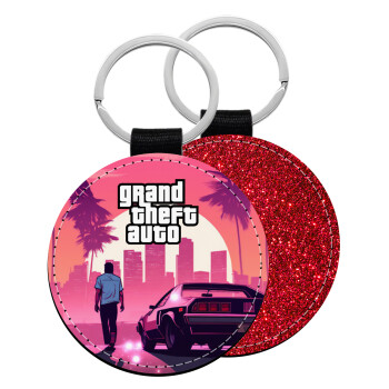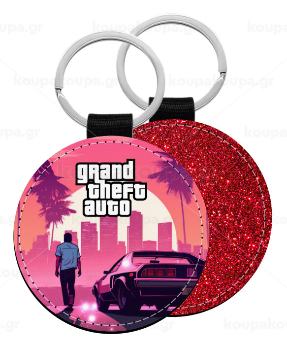 GTA (grand theft auto), Μπρελόκ Δερματίνη, στρογγυλό ΚΟΚΚΙΝΟ (5cm)