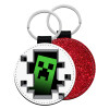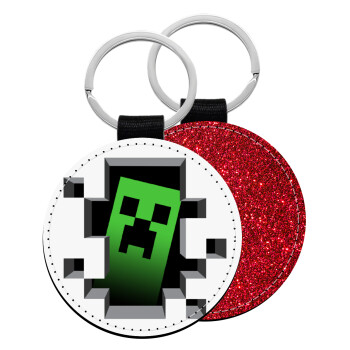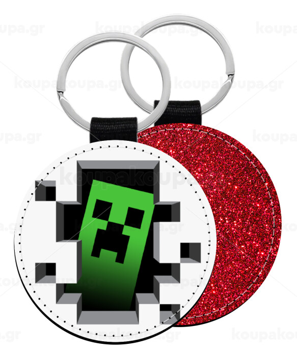 Minecraft creeper, Μπρελόκ Δερματίνη, στρογγυλό ΚΟΚΚΙΝΟ (5cm)