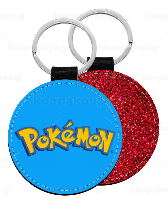 Pokemon, Μπρελόκ Δερματίνη, στρογγυλό ΚΟΚΚΙΝΟ (5cm)