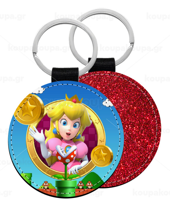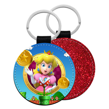 Princess Peach Toadstool, Μπρελόκ Δερματίνη, στρογγυλό ΚΟΚΚΙΝΟ (5cm)