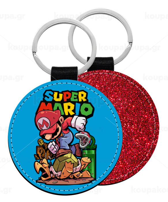 Super mario Jump, Μπρελόκ Δερματίνη, στρογγυλό ΚΟΚΚΙΝΟ (5cm)