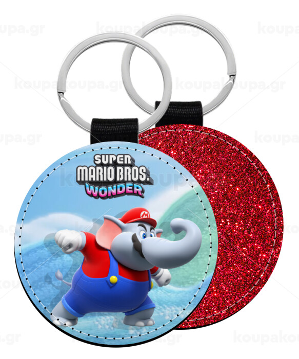 Super mario wonder, Μπρελόκ Δερματίνη, στρογγυλό ΚΟΚΚΙΝΟ (5cm)