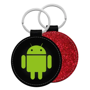 Android, Μπρελόκ Δερματίνη, στρογγυλό ΚΟΚΚΙΝΟ (5cm)