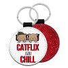 Catflix and Chill, Μπρελόκ Δερματίνη, στρογγυλό ΚΟΚΚΙΝΟ (5cm)