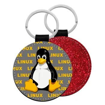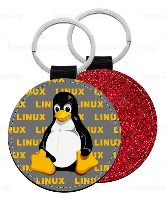 Linux, Μπρελόκ Δερματίνη, στρογγυλό ΚΟΚΚΙΝΟ (5cm)