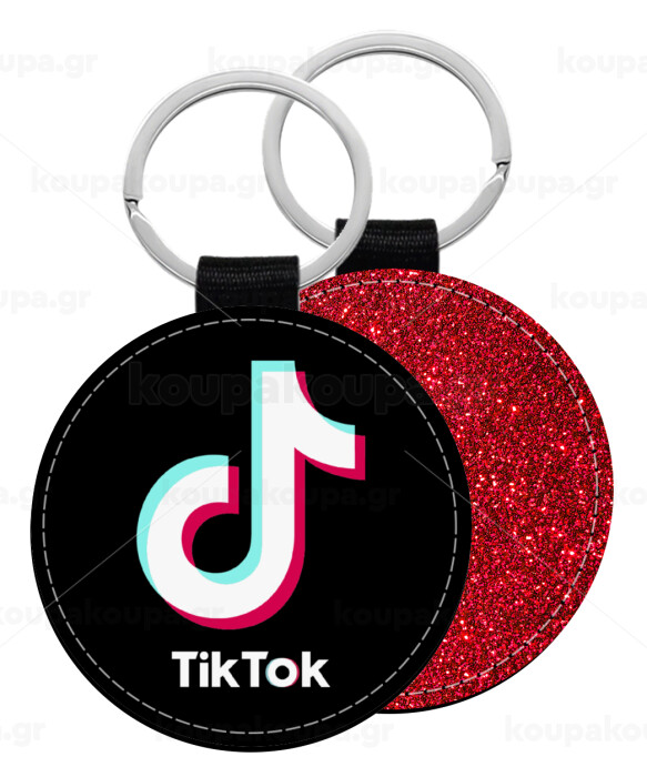 tik tok black, Μπρελόκ Δερματίνη, στρογγυλό ΚΟΚΚΙΝΟ (5cm)
