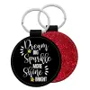 Dream big, Sparkle more, Shine bright, Μπρελόκ Δερματίνη, στρογγυλό ΚΟΚΚΙΝΟ (5cm)