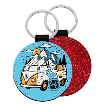 Life is a trip, Μπρελόκ Δερματίνη, στρογγυλό ΚΟΚΚΙΝΟ (5cm)