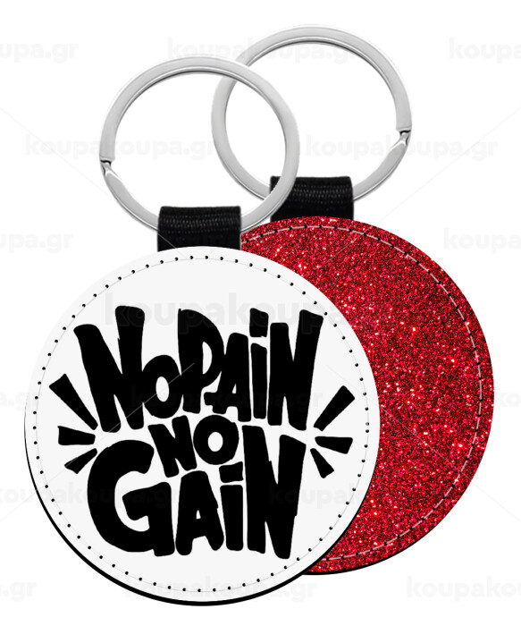 No pain no gain, Μπρελόκ Δερματίνη, στρογγυλό ΚΟΚΚΙΝΟ (5cm)