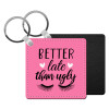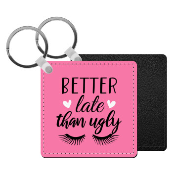 Better late than ugly, Μπρελόκ Δερματίνη, τετράγωνο ΜΑΥΡΟ (5x5cm)