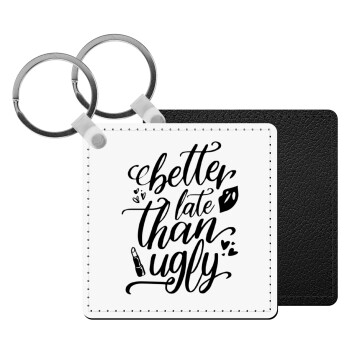 Better late than ugly, Μπρελόκ Δερματίνη, τετράγωνο ΜΑΥΡΟ (5x5cm)