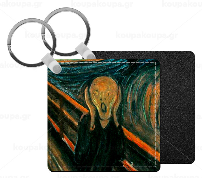 The Scream, Μπρελόκ Δερματίνη, τετράγωνο ΜΑΥΡΟ (5x5cm)