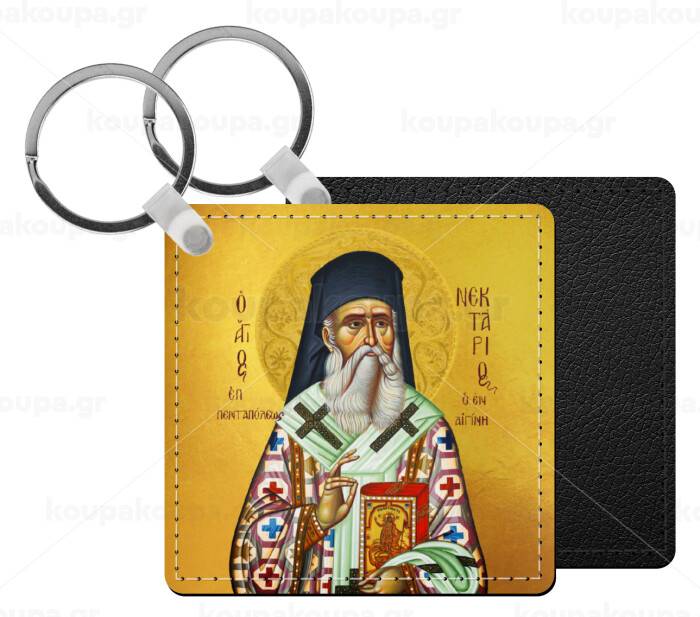 Saint Nektarios, Μπρελόκ Δερματίνη, τετράγωνο ΜΑΥΡΟ (5x5cm)