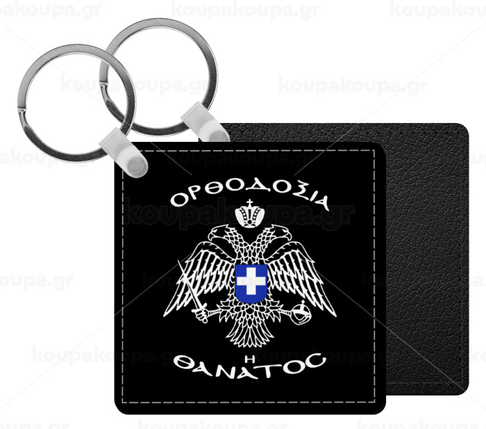 Ορθοδοξία ή Θάνατος, Μπρελόκ Δερματίνη, τετράγωνο ΜΑΥΡΟ (5x5cm)