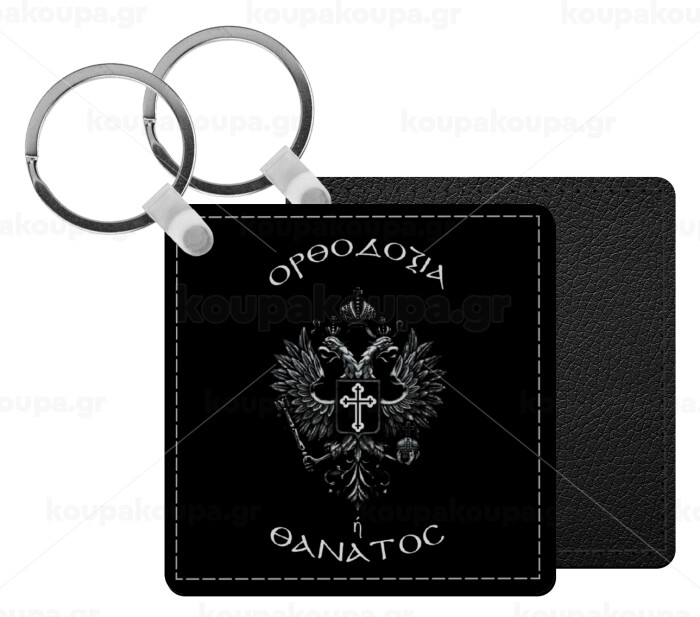 Ορθοδοξία ή Θάνατος, Μπρελόκ Δερματίνη, τετράγωνο ΜΑΥΡΟ (5x5cm)