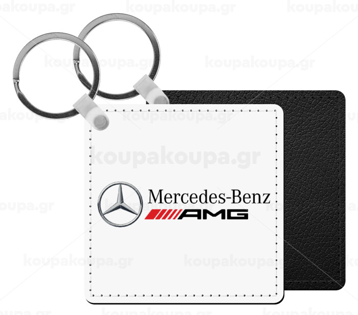 AMG Mercedes, Μπρελόκ Δερματίνη, τετράγωνο ΜΑΥΡΟ (5x5cm)