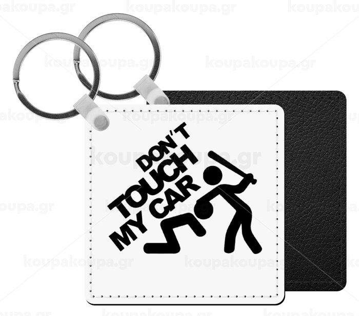 Don't touch my car, Μπρελόκ Δερματίνη, τετράγωνο ΜΑΥΡΟ (5x5cm)