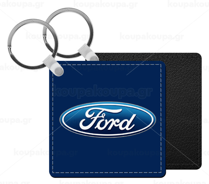 Ford, Μπρελόκ Δερματίνη, τετράγωνο ΜΑΥΡΟ (5x5cm)