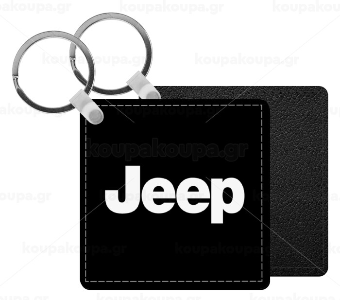 Jeep, Μπρελόκ Δερματίνη, τετράγωνο ΜΑΥΡΟ (5x5cm)