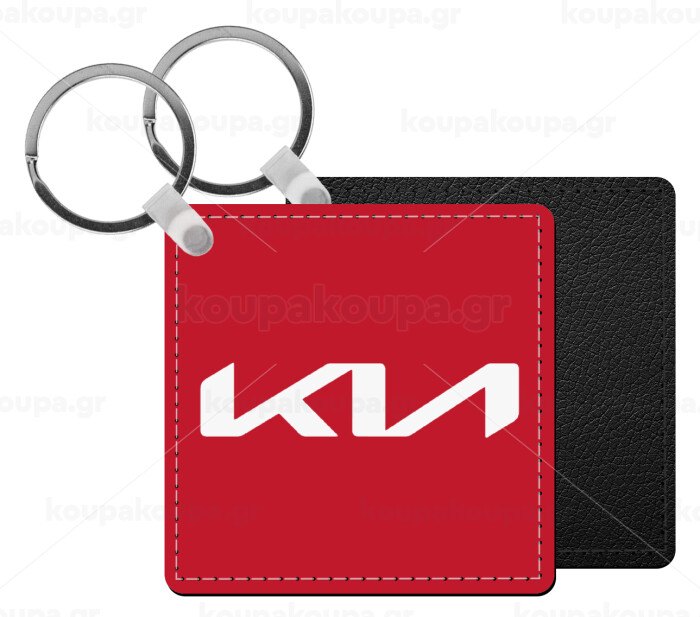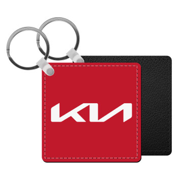 KIA, Μπρελόκ Δερματίνη, τετράγωνο ΜΑΥΡΟ (5x5cm)