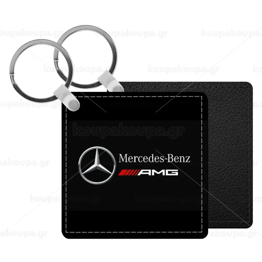 Mercedes AMG, Μπρελόκ Δερματίνη, τετράγωνο ΜΑΥΡΟ (5x5cm)