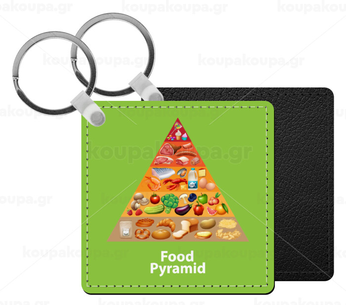 Food pyramid chart, Μπρελόκ Δερματίνη, τετράγωνο ΜΑΥΡΟ (5x5cm)