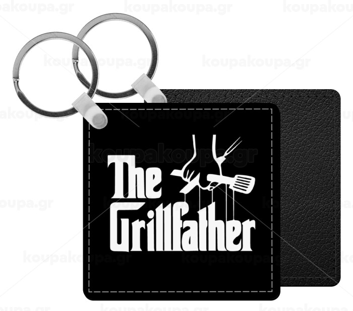 The Grillfather, Μπρελόκ Δερματίνη, τετράγωνο ΜΑΥΡΟ (5x5cm)