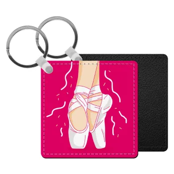 Ballerina shoes, Μπρελόκ Δερματίνη, τετράγωνο ΜΑΥΡΟ (5x5cm)