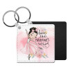 Ballerina watercolor, Μπρελόκ Δερματίνη, τετράγωνο ΜΑΥΡΟ (5x5cm)
