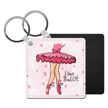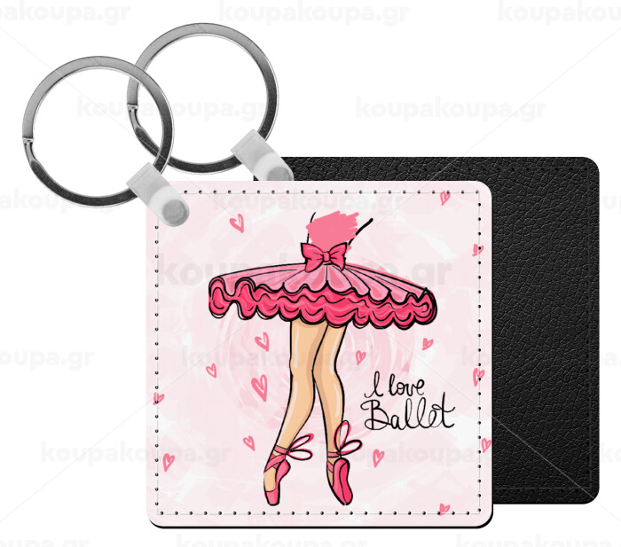 I Love Ballet, Μπρελόκ Δερματίνη, τετράγωνο ΜΑΥΡΟ (5x5cm)