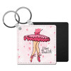 Ballerina in Paris, Μπρελόκ Δερματίνη, τετράγωνο ΜΑΥΡΟ (5x5cm)