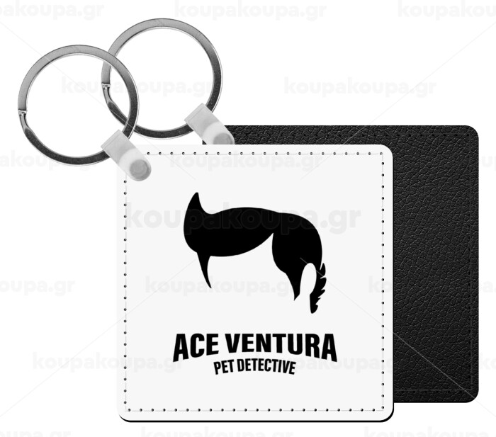 Ace Ventura Pet Detective, Μπρελόκ Δερματίνη, τετράγωνο ΜΑΥΡΟ (5x5cm)