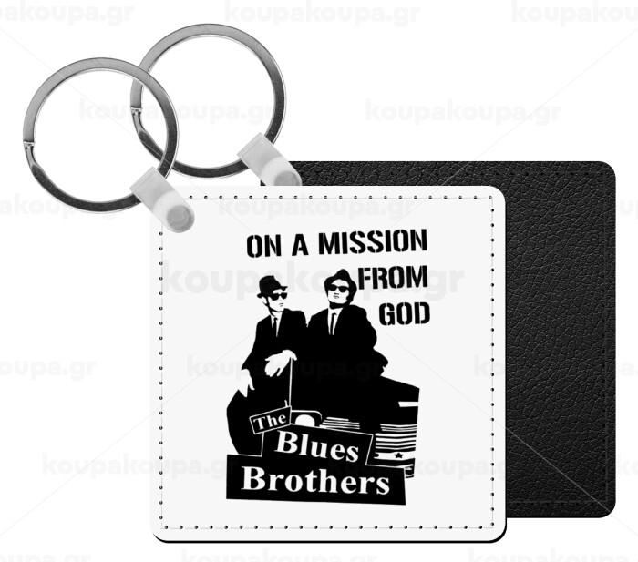 Blues brothers on a mission from God, Μπρελόκ Δερματίνη, τετράγωνο ΜΑΥΡΟ (5x5cm)