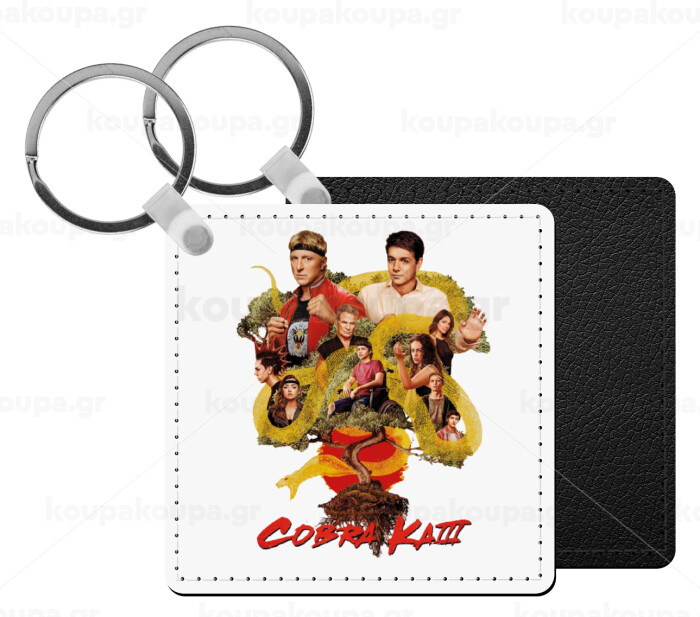 Cobra Kai tree, Μπρελόκ Δερματίνη, τετράγωνο ΜΑΥΡΟ (5x5cm)