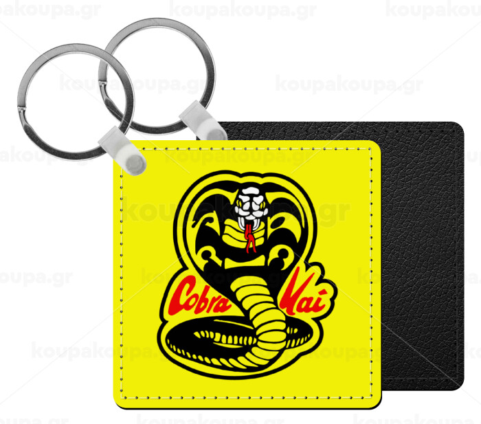 Cobra Kai Yellow, Μπρελόκ Δερματίνη, τετράγωνο ΜΑΥΡΟ (5x5cm)