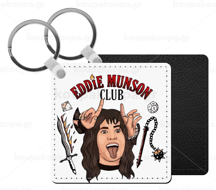 Eddie Munson, Hellfire CLub, Stranger Things, Μπρελόκ Δερματίνη, τετράγωνο ΜΑΥΡΟ (5x5cm)