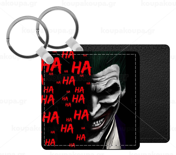 Joker hahaha, Μπρελόκ Δερματίνη, τετράγωνο ΜΑΥΡΟ (5x5cm)