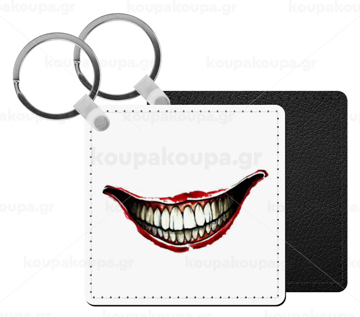 Joker smile, Μπρελόκ Δερματίνη, τετράγωνο ΜΑΥΡΟ (5x5cm)