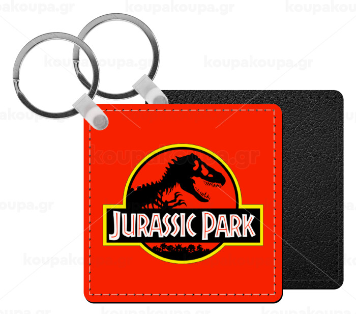 Jurassic park, Μπρελόκ Δερματίνη, τετράγωνο ΜΑΥΡΟ (5x5cm)