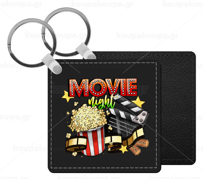 Movie night, Μπρελόκ Δερματίνη, τετράγωνο ΜΑΥΡΟ (5x5cm)